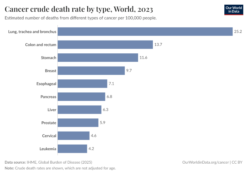The chart below shows the cancers with the highest death rates globally.