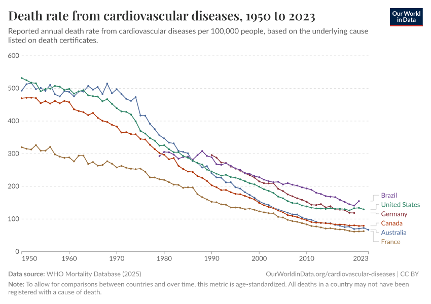 Saloni Dattani (2025) - “Death rates from cardiovascular disease have fallen dramatically — what were the breakthroughs behind this?” Published online at OurWorldinData.org. Retrieved from: 'https://data-forest-share-update.owid.pages.dev:8789/20251125-173858/cardiovascular-deaths-decline.html' [Online Resource] (archived on November 25, 2025).BibTeX citation