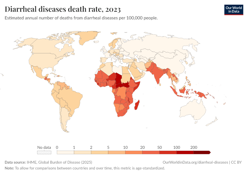 Saloni Dattani, Fiona Spooner, Hannah Ritchie, and Max Roser (2023) - “Diarrheal Diseases” Published online at OurWorldinData.org. Retrieved from: 'https://data-forest-share-update.owid.pages.dev/diarrheal-diseases' [Online Resource]BibTeX citation