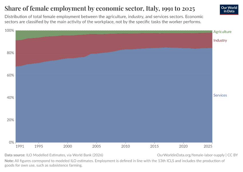 Esteban Ortiz-Ospina, Sandra Tzvetkova, and Max Roser (2018) - “Women's Employment” Published online at OurWorldinData.org. Retrieved from: 'https://data-forest-share-update.owid.pages.dev/female-labor-supply' [Online Resource]BibTeX citation