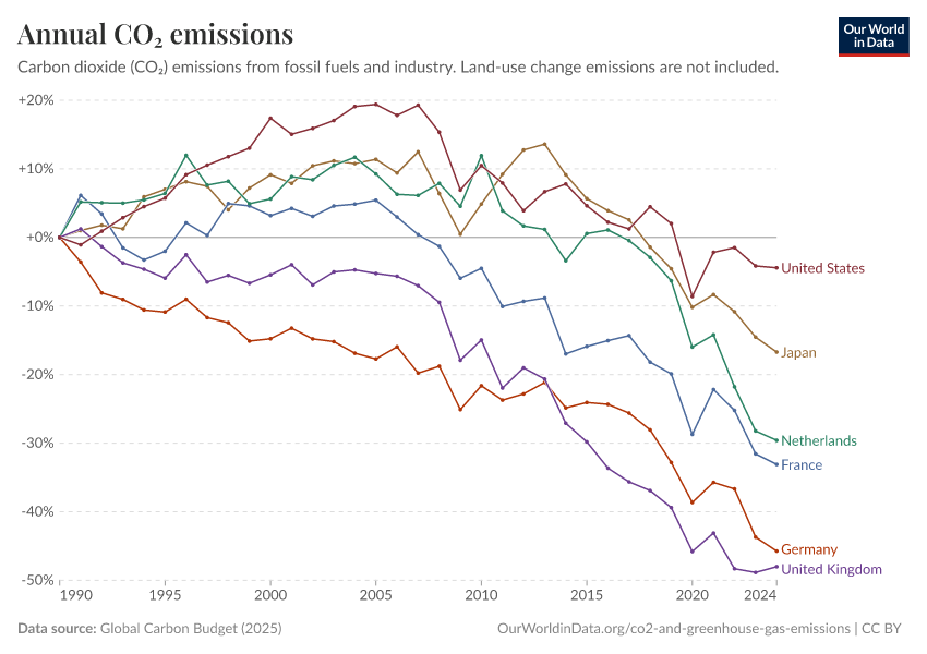 Global Carbon Budget (2025) – with major processing by Our World in Data. “Annual CO₂ emissions” [dataset]. Global Carbon Project, “Global Carbon Budget v15” [original data]. Retrieved December 29, 2025 from https://data-forest-share-update.owid.pages.dev:8789/20251204-133459/grapher/annual-co2-emissions-per-country.html (archived on December 4, 2025).