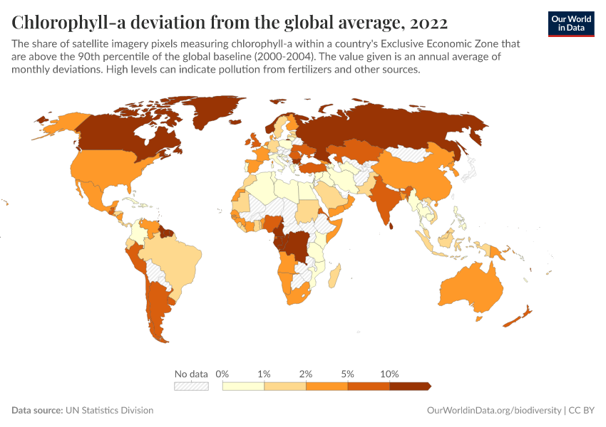 “Data Page: Chlorophyll-a deviation from the global average”. Our World in Data (2025). Data adapted from UN Statistics Division. Retrieved from https://data-forest-share-update.owid.pages.dev:8789/20251125-165536/grapher/chlorophyll-a-deviation-from-the-global-average.html [online resource] (archived on November 25, 2025).How to cite this data