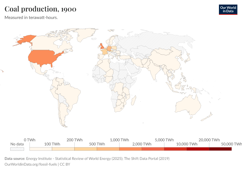 - The data is generated by combining the latest data from the Energy Institute Statistical Review of World Energy and The Shift Dataportal. The Energy Institute provides fossil fuel production data from 1965 onwards (and crude prices from 1861 onwards). The Shift Dataportal provides long-term data from 1900, but only extends to 2016. To maintain consistency with other energy data, we prioritize the Energy Institute data - meaning if they provide data for the given country and year, this data is used. Where data is not available from the Energy Institute for a given country, or pre-1965 we rely on data from The Shift Dataportal.