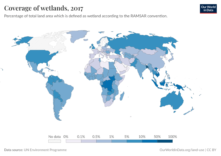 “Data Page: Coverage of wetlands”. Our World in Data (2025). Data adapted from UN Environment Programme. Retrieved from https://data-forest-share-update.owid.pages.dev:8789/20251125-165536/grapher/coverage-of-wetlands.html [online resource] (archived on November 25, 2025).How to cite this data