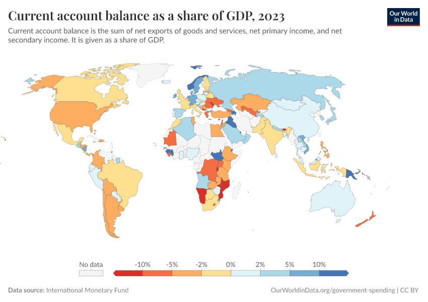 “Data Page: Current account balance as a share of GDP”. Our World in Data (2025). Data adapted from International Monetary Fund. Retrieved from https://data-forest-share-update.owid.pages.dev:8789/20251120-211749/grapher/current-account-balance-as-a-proportion-of-gdp.html [online resource] (archived on November 20, 2025).How to cite this data