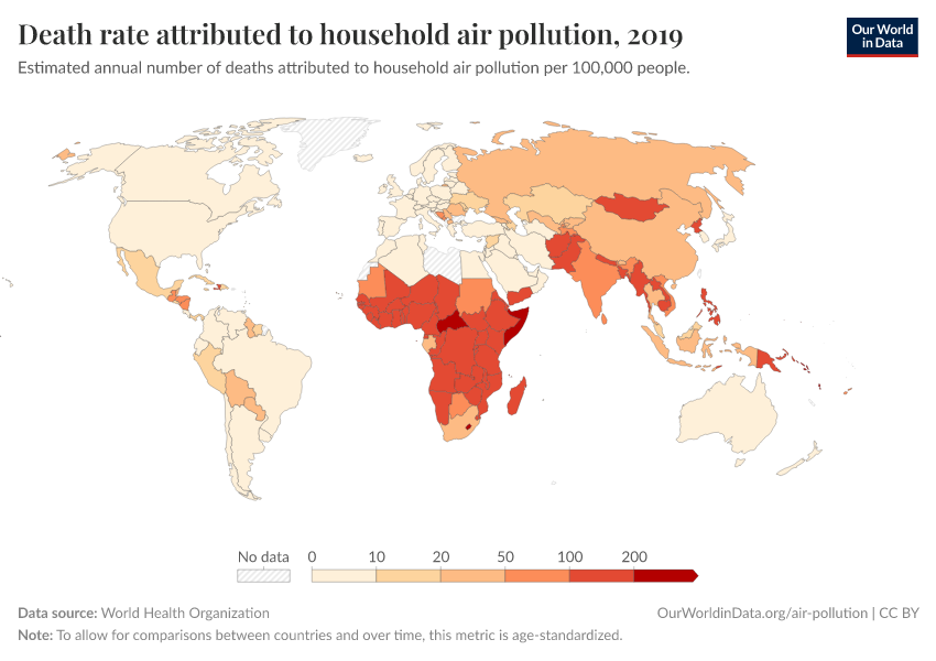 “Data Page: Death rate attributed to household air pollution”. Our World in Data (2025). Data adapted from World Health Organization. Retrieved from https://data-forest-share-update.owid.pages.dev:8789/20251125-165536/grapher/death-rate-household-air-pollution.html [online resource] (archived on November 25, 2025).How to cite this data