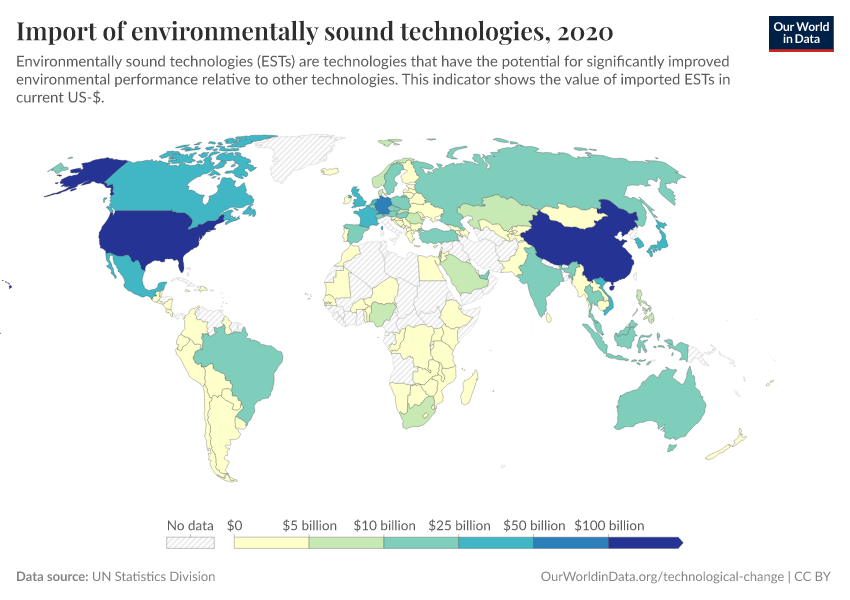 “Data Page: Import of environmentally sound technologies”. Our World in Data (2025). Data adapted from UN Statistics Division. Retrieved from https://data-forest-share-update.owid.pages.dev:8789/20251125-165536/grapher/import-of-environmentally-sound-technologies.html [online resource] (archived on November 25, 2025).How to cite this data