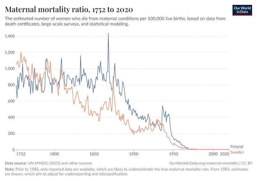 “Data Page: Maternal mortality ratio”, part of the following publication: Max Roser and Hannah Ritchie (2013) - “Maternal Mortality”. Data adapted from UN MMEIG (WHO, UNICEF, UNFPA, World Bank Group and UNDESA/ Population Division), WHO Mortality Database, United Nations, Gapminder. Retrieved from https://data-forest-share-update.owid.pages.dev:8789/20251209-133038/grapher/maternal-mortality.html [online resource] (archived on December 9, 2025).