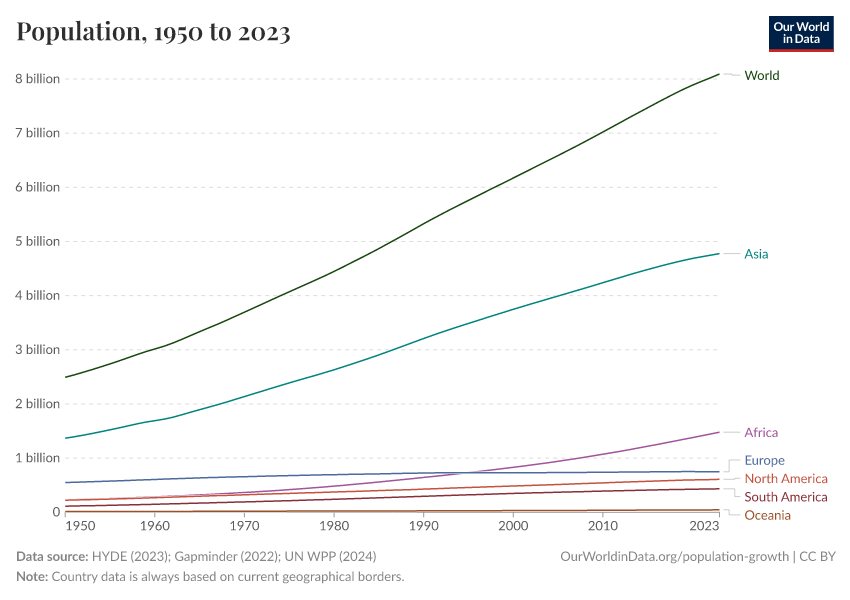 1950–2023: population records from the United Nations World Population Prospects (2024 revision).
