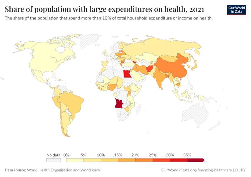 “Data Page: Share of population with large expenditures on health”. Our World in Data (2025). Data adapted from World Health Organisation and World Bank. Retrieved from https://data-forest-share-update.owid.pages.dev:8789/20251125-165536/grapher/share-of-population-with-large-household-expenditures-on-health-10pc.html [online resource] (archived on November 25, 2025).How to cite this data
