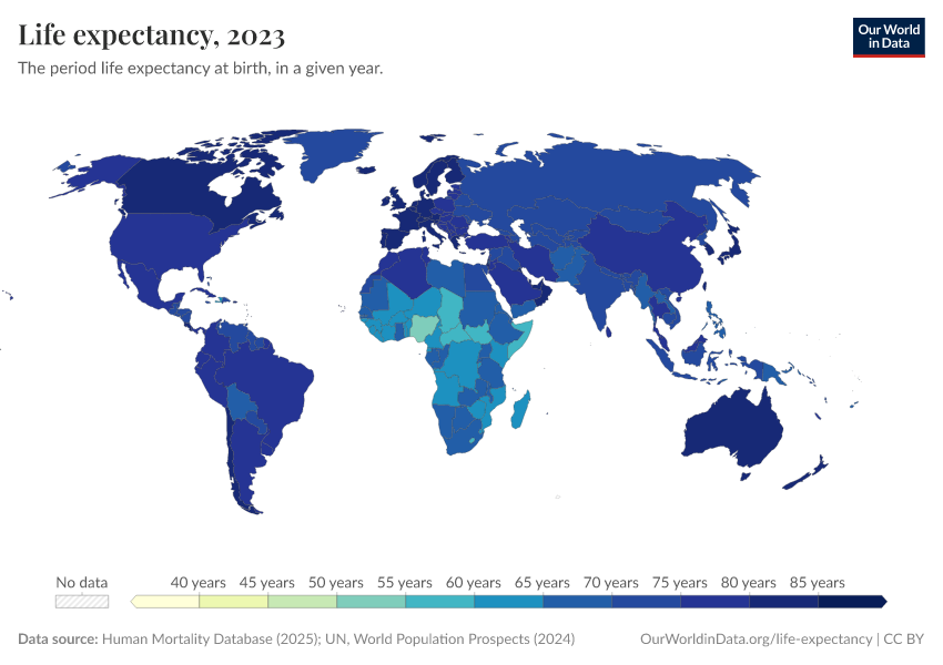 Saloni Dattani, Lucas Rodés-Guirao, Hannah Ritchie, Esteban Ortiz-Ospina, and Max Roser (2023) - “Life Expectancy” Published online at OurWorldinData.org. Retrieved from: 'https://data-forest-share-update.owid.pages.dev/life-expectancy' [Online Resource]BibTeX citation