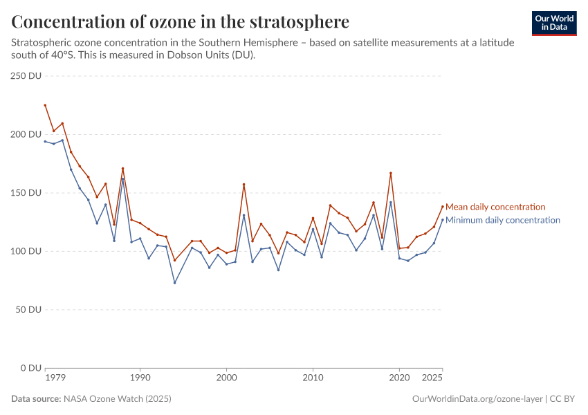 Hannah Ritchie, Lucas Rodés-Guirao, and Max Roser (2023) - “Ozone Layer” Published online at OurWorldinData.org. Retrieved from: 'https://data-forest-share-update.owid.pages.dev/ozone-layer' [Online Resource]BibTeX citation
