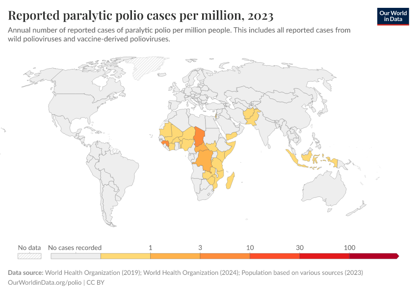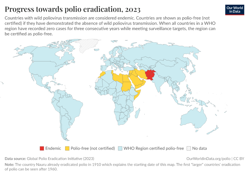 Saloni Dattani, Fiona Spooner, Sophie Ochmann, and Max Roser (2022) - “Polio” Published online at OurWorldinData.org. Retrieved from: 'https://data-forest-share-update.owid.pages.dev/polio' [Online Resource]BibTeX citation