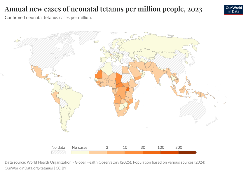New tetanus cases by country