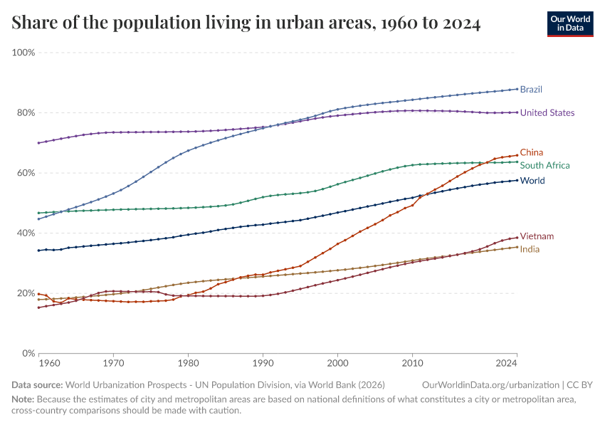 Hannah Ritchie, Veronika Samborska, and Max Roser (2024) - “Urbanization” Published online at OurWorldinData.org. Retrieved from: 'https://data-forest-share-update.owid.pages.dev/urbanization' [Online Resource]BibTeX citation